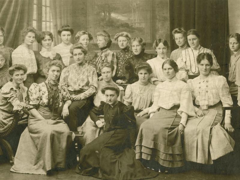 Billedtekst: Pigeskole i Odense i 1906 (Museum Odense).
