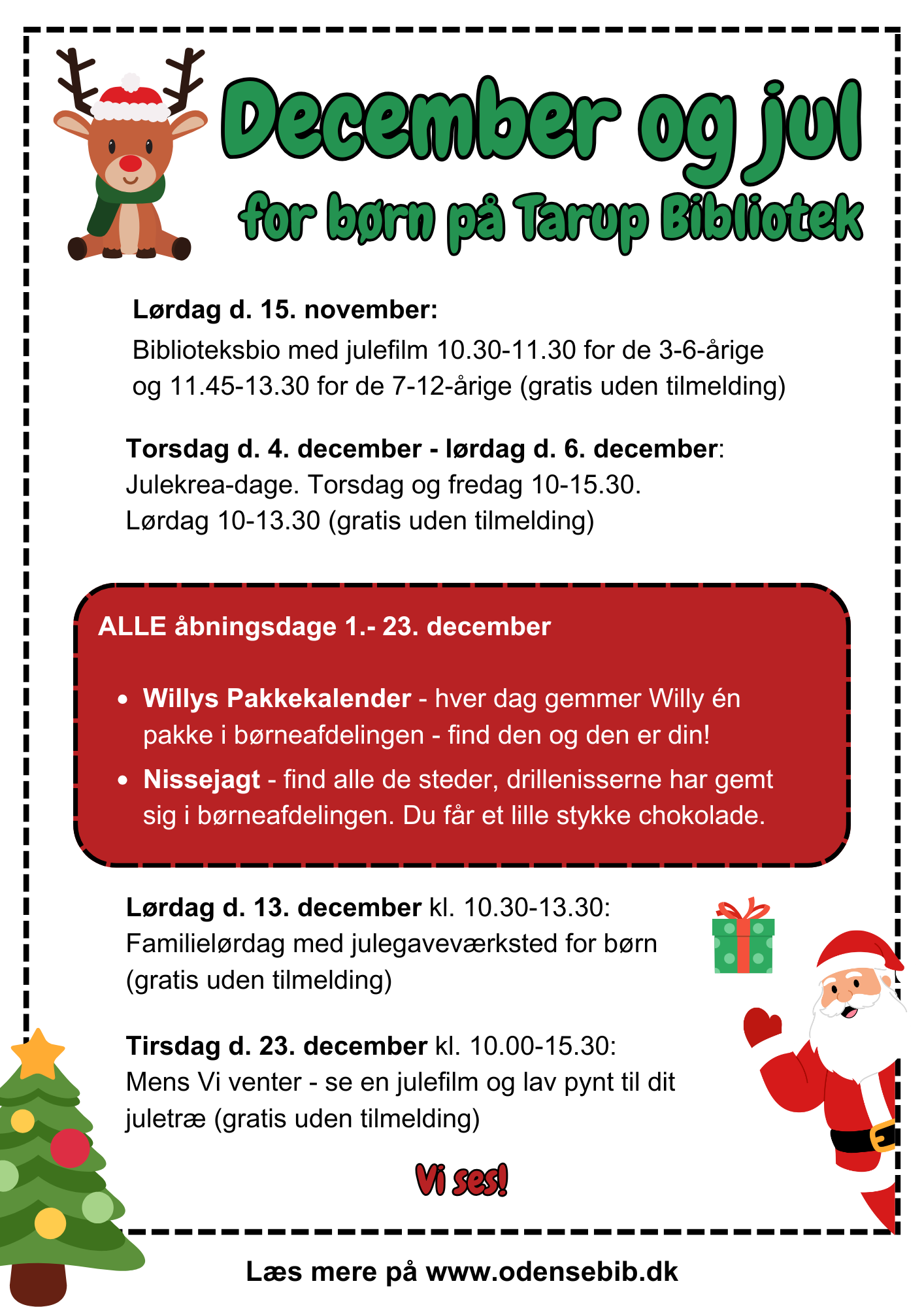 Kom og se små, sjove julefilm for de mindste på Tarup BibliotekTarup Bibliotek